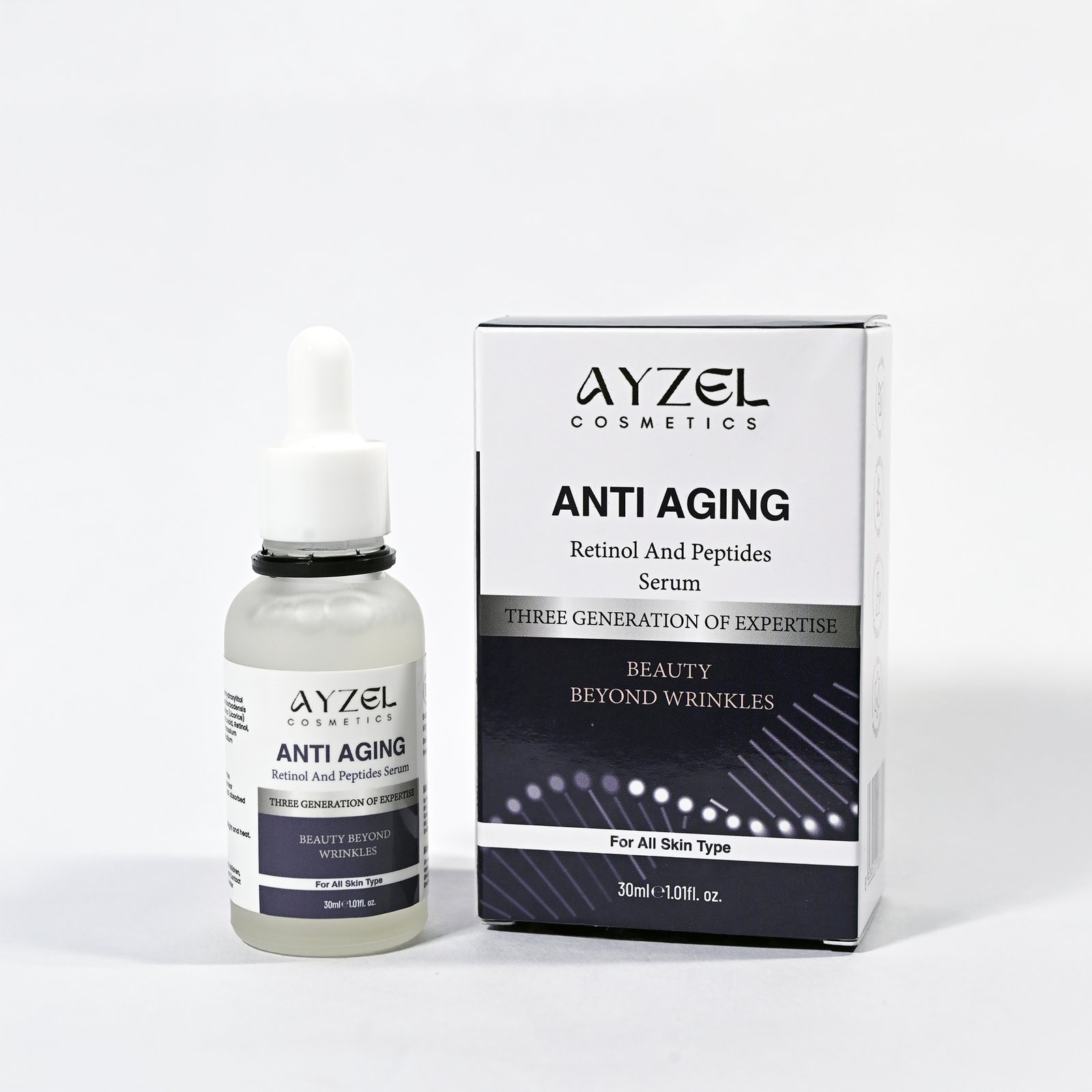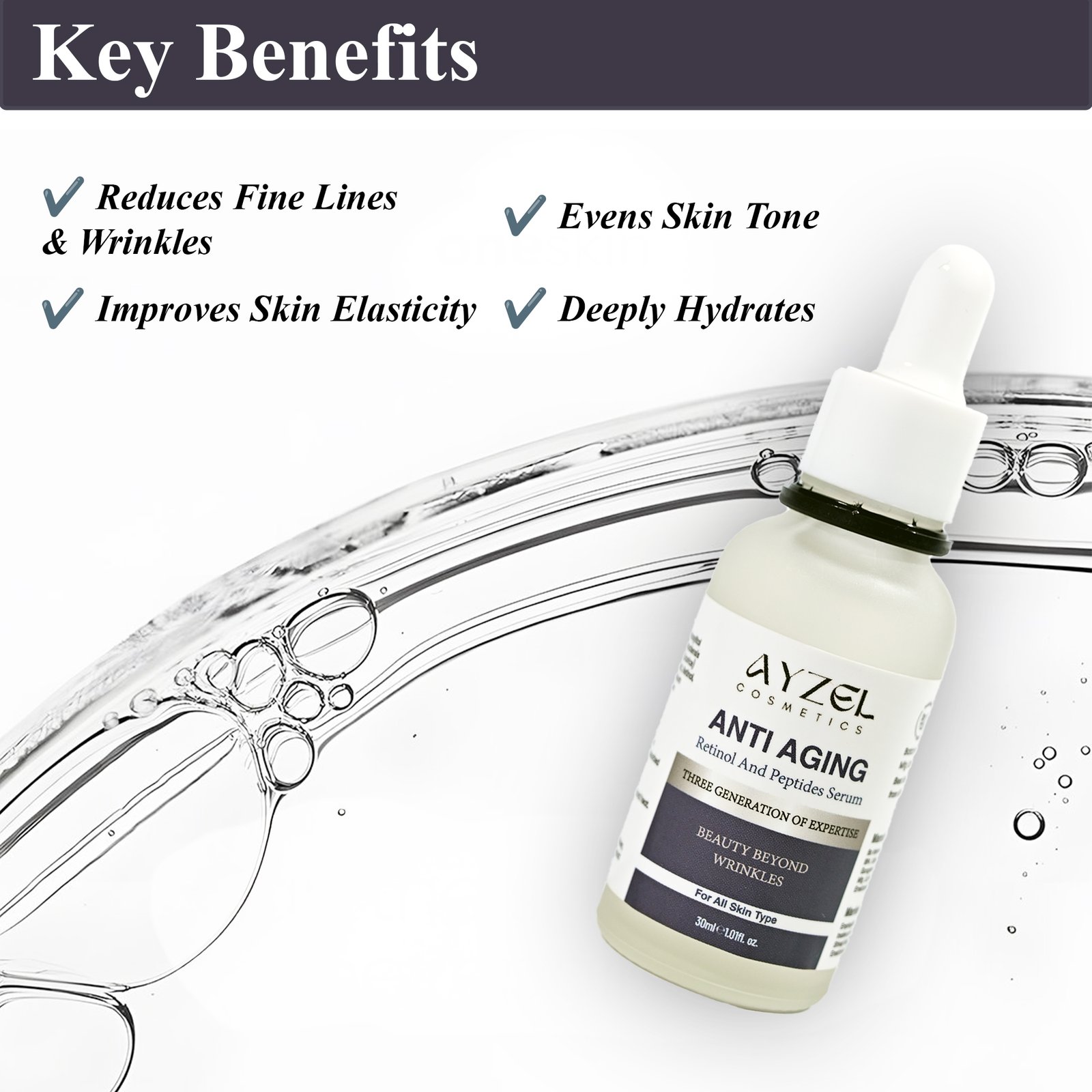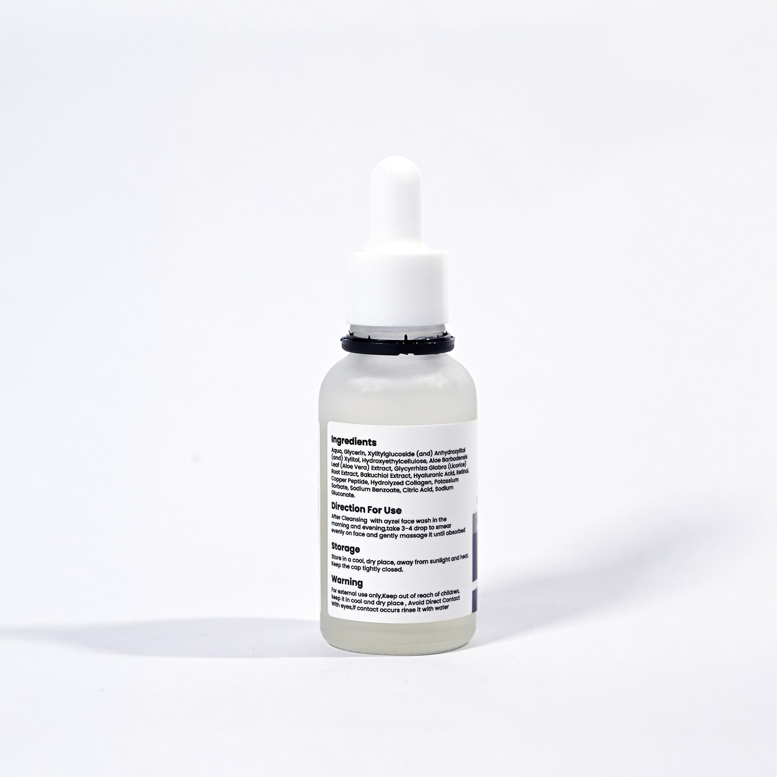 Retinol-0.5%, Peptide-1%, Hyaluronic acid-1%, Bakuchi extract-2%, Collagen-0.5%.